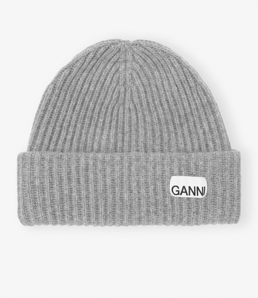 This Wool Beanie features a GANNI logo and is made from a blend of certified post-consumer recycled wool.