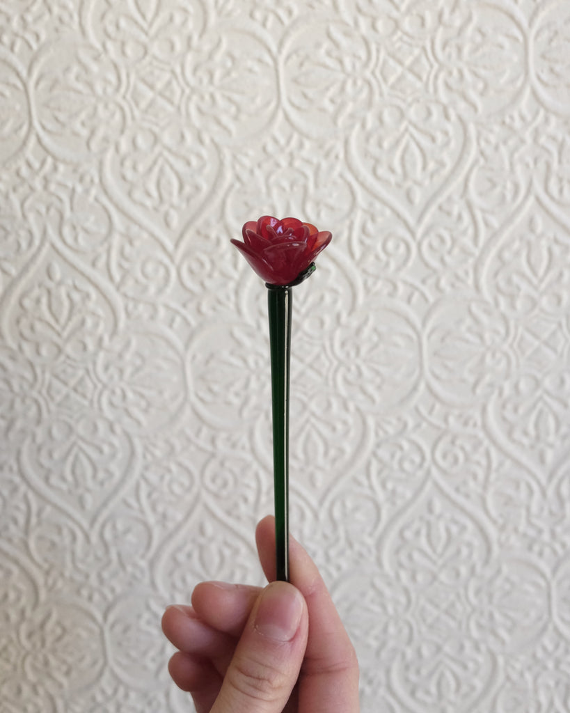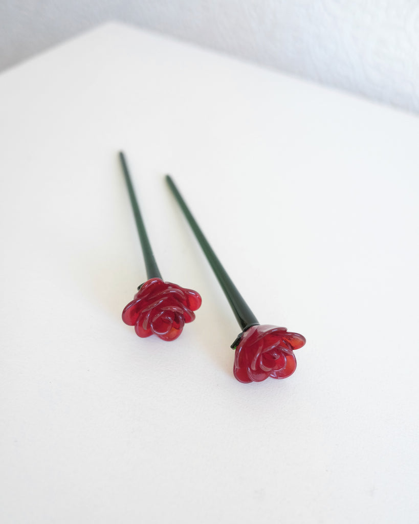 Ninfa Handmade Cocktail Sticks (or hair pins) in red glass.