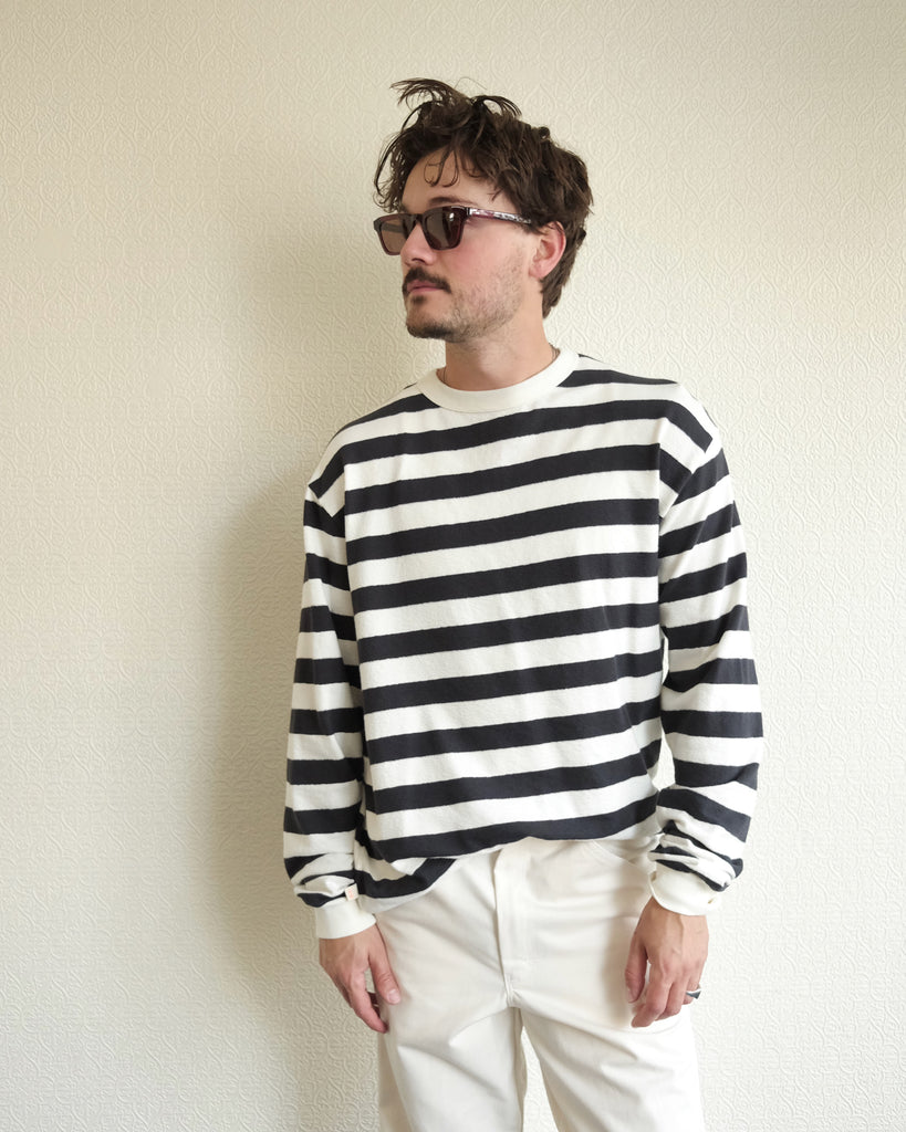 Feijo long sleeve shirt in black and sand stripes.