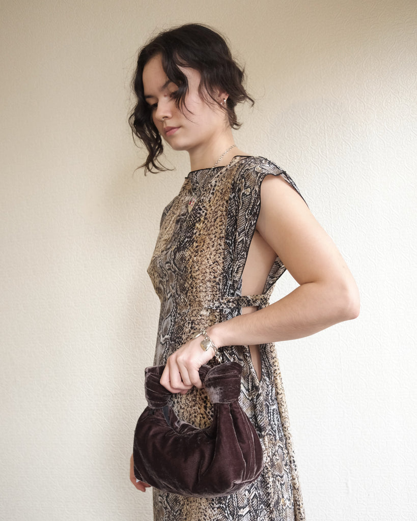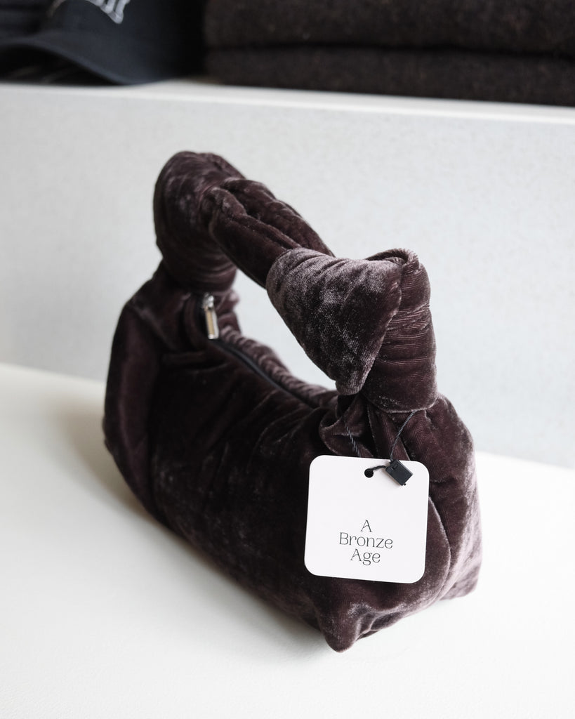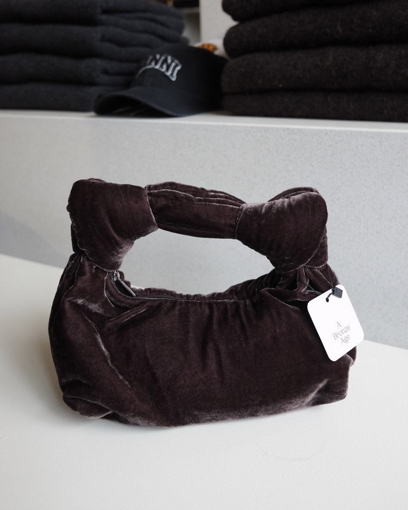 • A Bronze Age Bambi Bag in eclipse velvet.