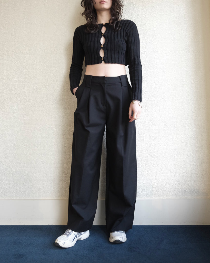 These trousers feature belt loops, zip closure, side pockets, a sewn-on GANNI logo patch and a back pocket.
