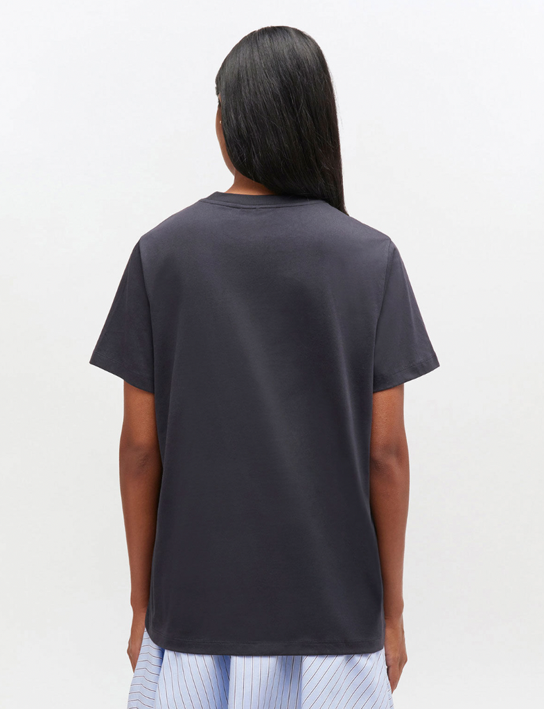 GANNI Tee featuring a round neckline, short sleeves, and a GANNI logo. The T-shirt has a puppy print graphic and a 'Have a nice day! Please recycle' message. Made in Portugal.