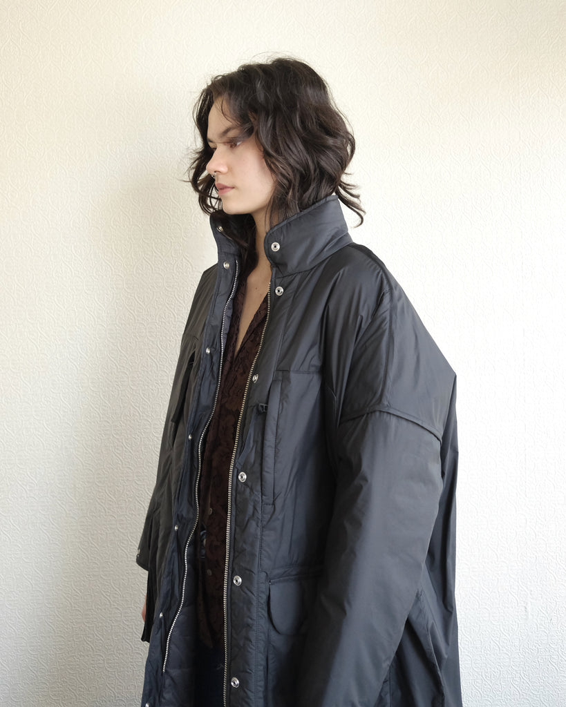 100% Recycled Nylon Outer, Fill is post consumer poly.