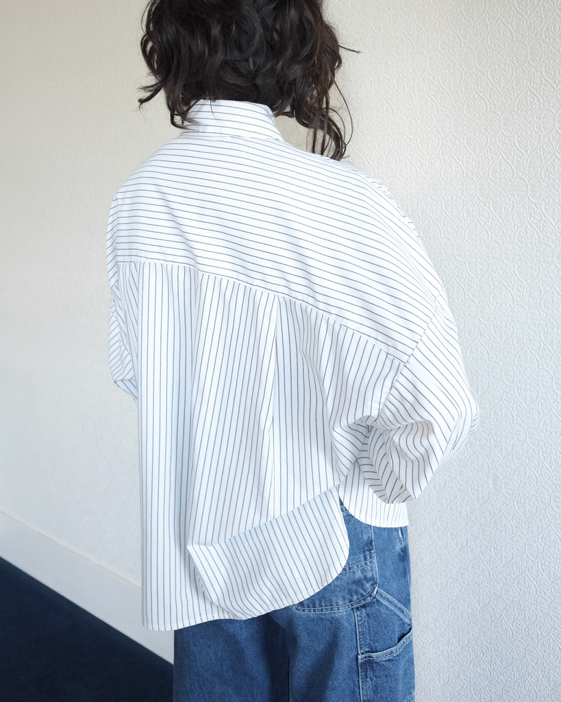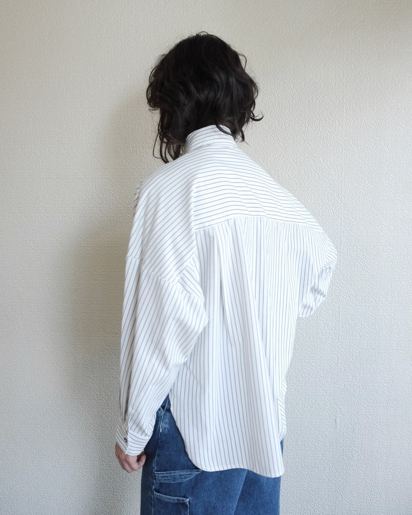 A Bronze Age Robbie Shirt in white pencil stripe.