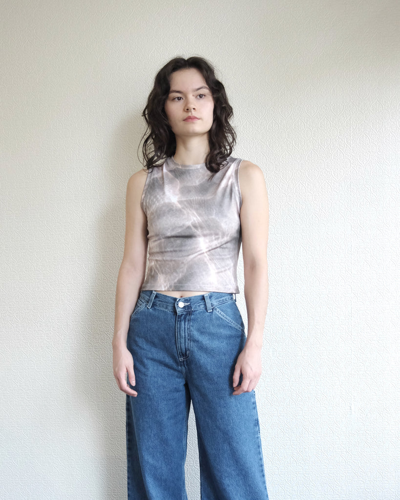 Handmade out of a stretchy, buttery, deadstock, recycled polyester, with a custom sublimation print, designed by us.